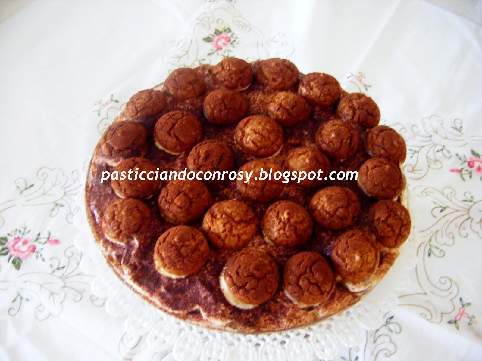 Foderate una teglia a cerniera con i savoiardi che avrete bagnato nel caffè. Versate poi un primo strato di crema sulla base fatta di savoiardi, ancora unostrato di savoiardi, uno di crema e infine potrete o spolverare con cacao amaro o decorare con della ganache come ho fatto io.
